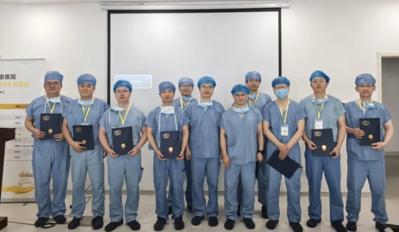 上午,学员分组进入手术室,现场观摩足踝外科诊疗中心主任赵宏谋主刀的INFINITY全踝置换手术。赵宏谋结合操作步骤,系统讲解显露、截骨、假体植入及力线调整等关键技术,并提示术中风险点。下午进行手术复盘与答疑,赵宏谋为完成课程的学员颁发证书。