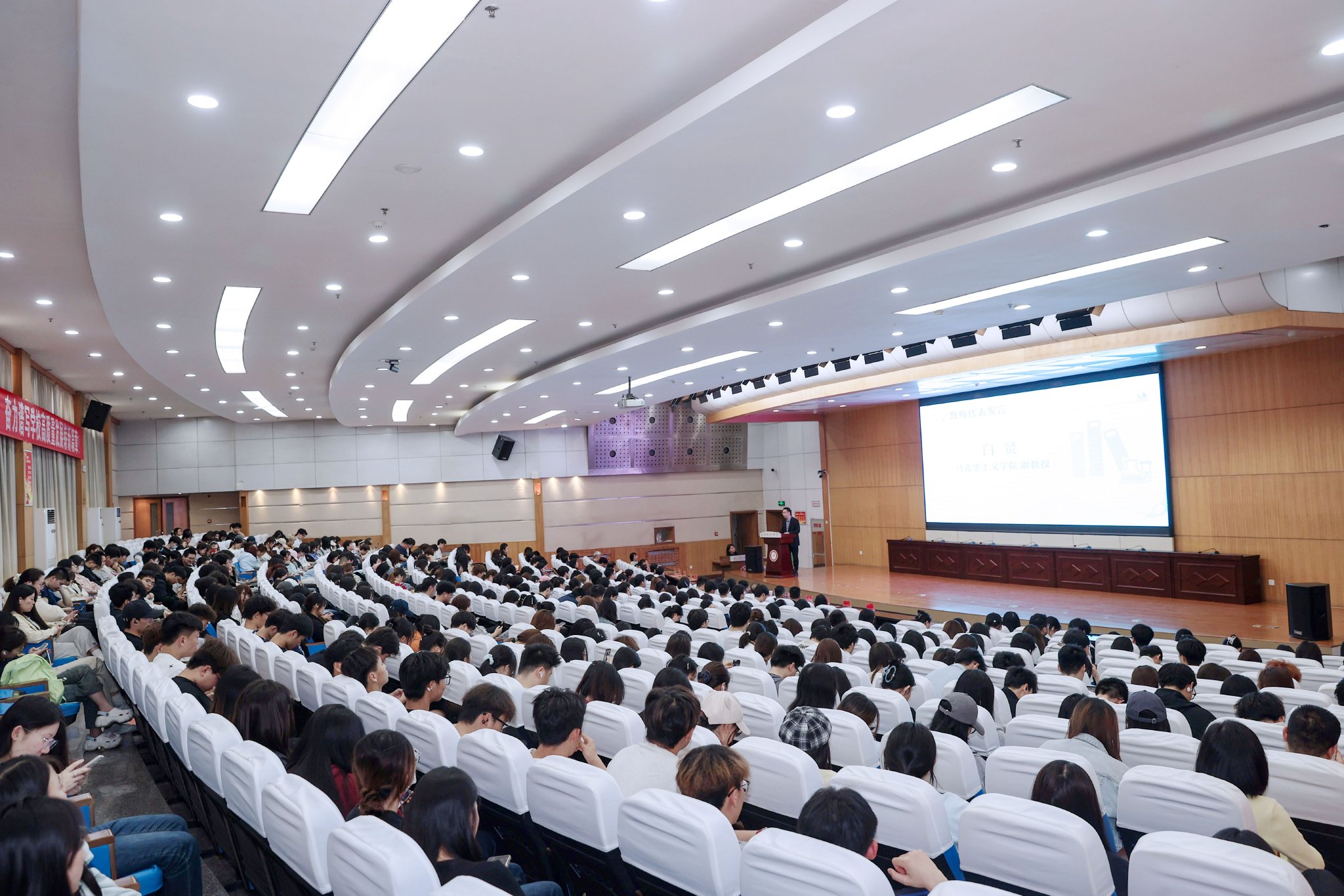 4月16日,学校厚德楼报告厅内座无虚席,副校长姚波在活动启动仪式上指出:“阅读是获取知识、启智增慧、涵养道德的重要途径。”他从法治、专业、数智、创新、机制五个维度,阐释了学校推进全民阅读的决心与路径,强调要“以书香校园助力书香社会建设”。
